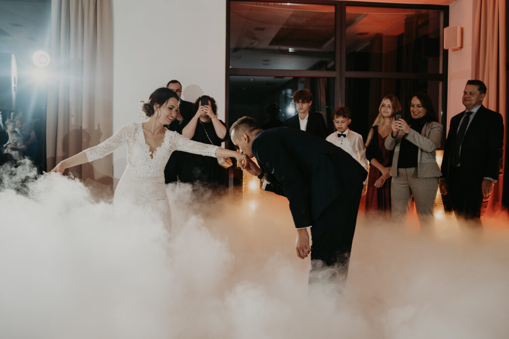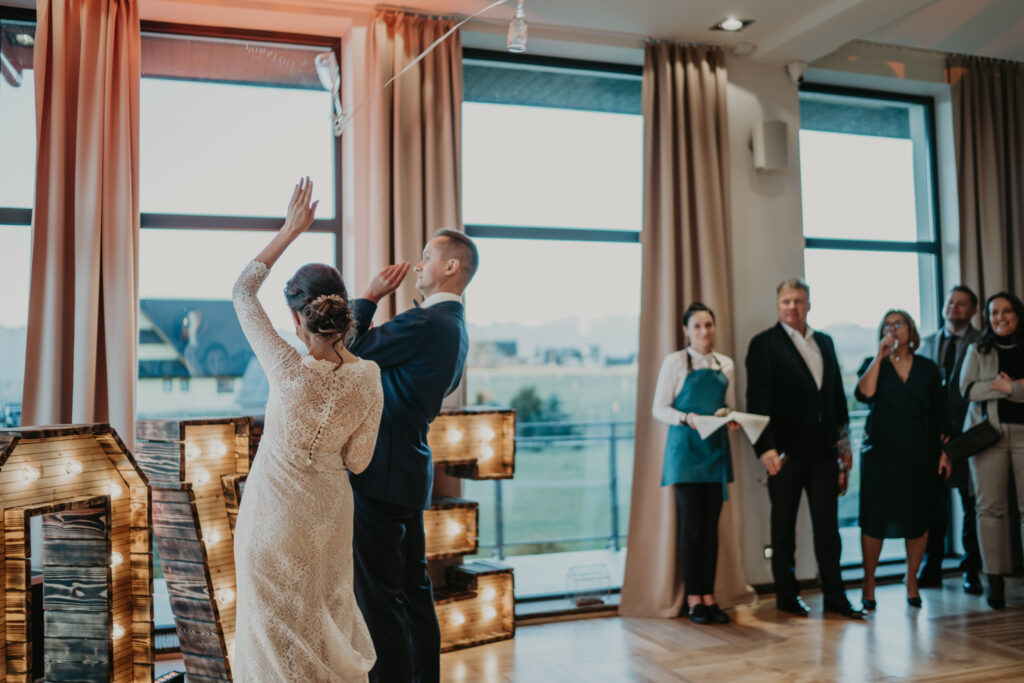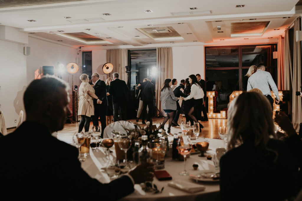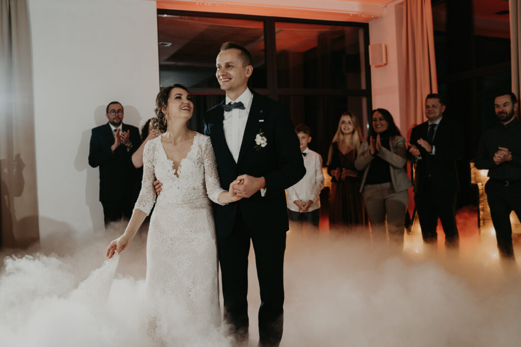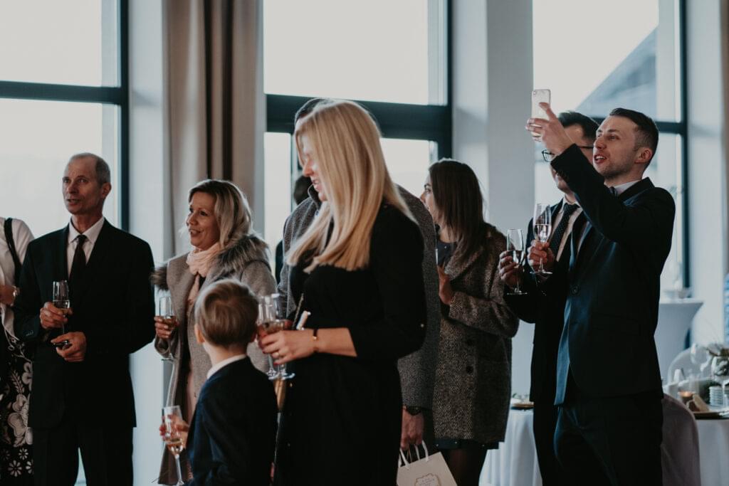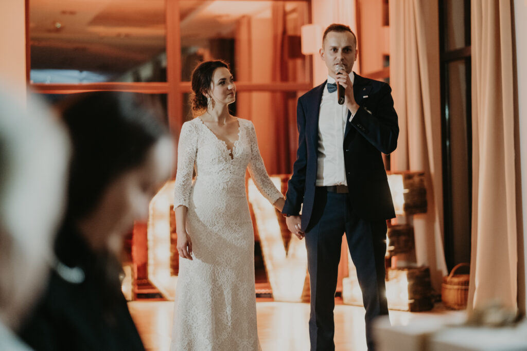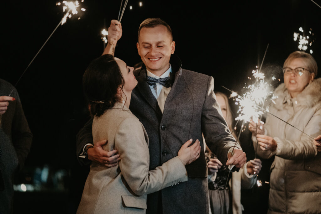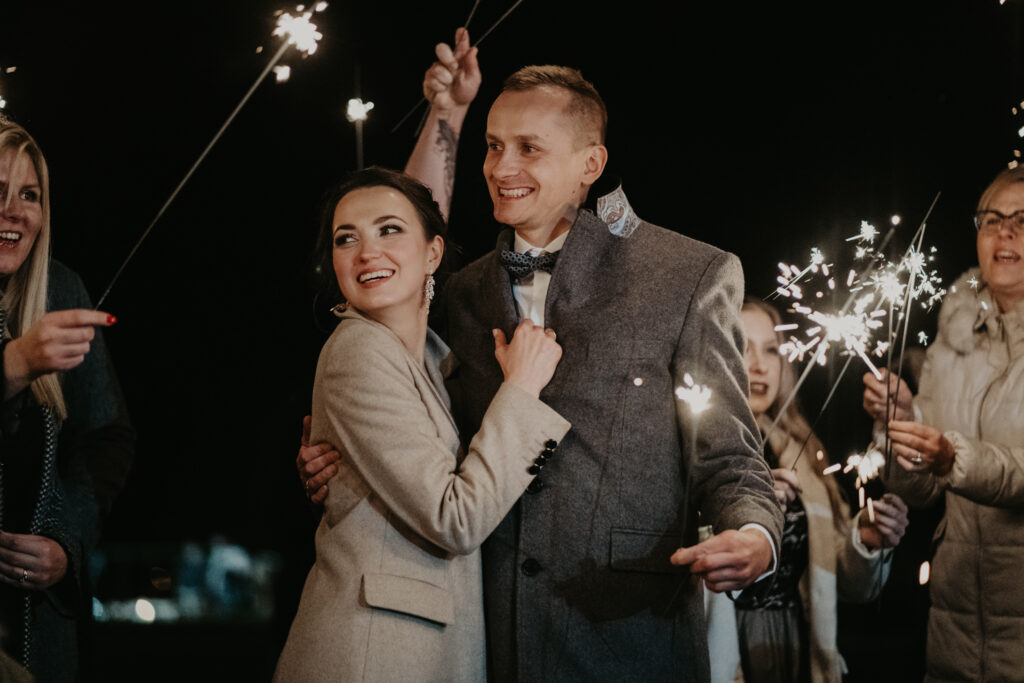 Na weselu było tylko 40 najbliższych dla Pary młodej osób, ale to nie przeszkadzało w świetnej zabawie. Goście tańczyli, śpiewali i bawili się do samego rana. Mimo, iż na zewnątrz było zimno, atmosfera w środku była ciepła i pełna radości.