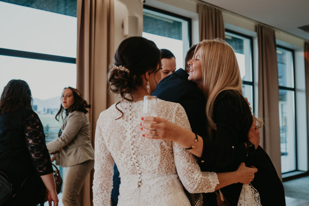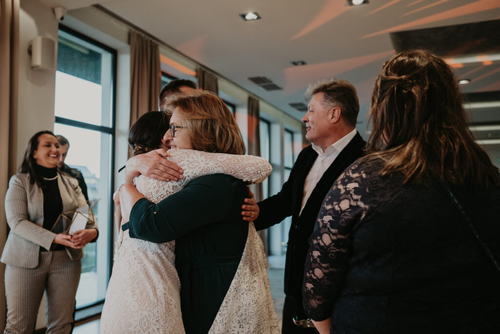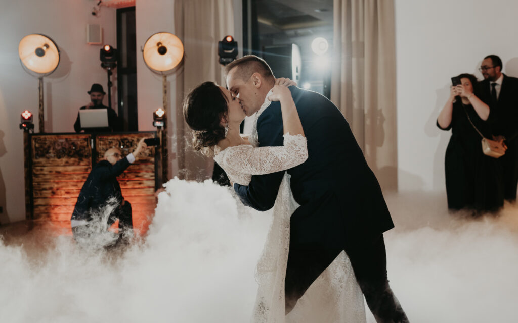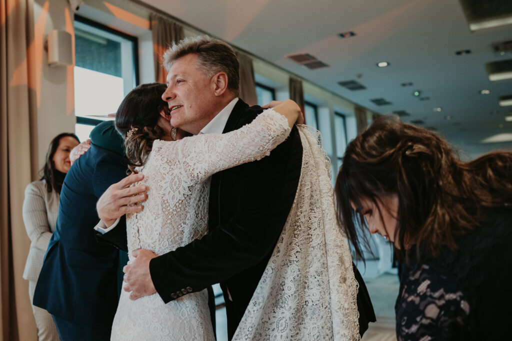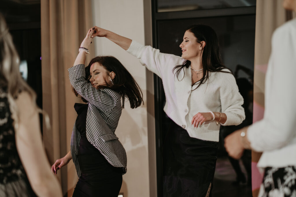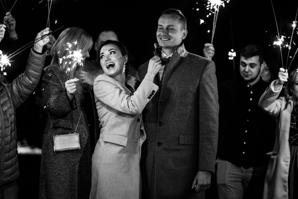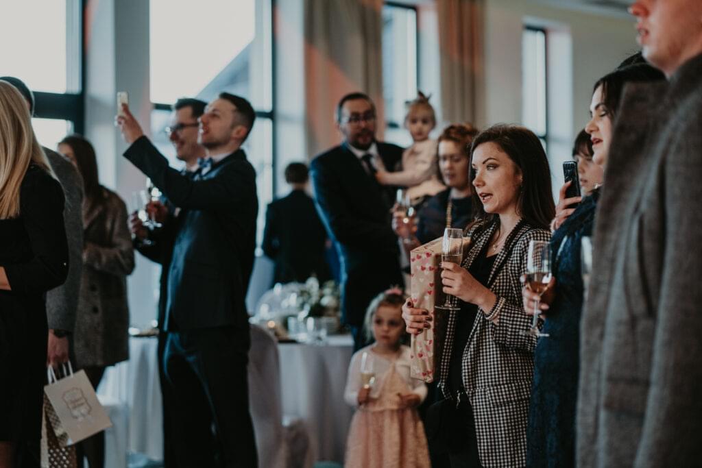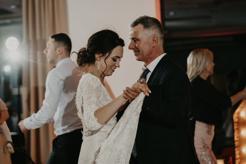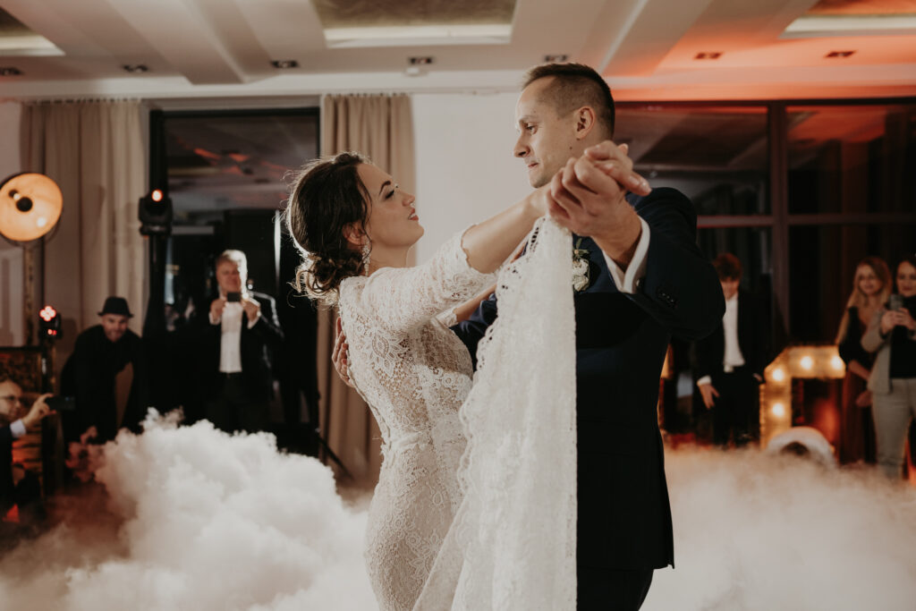 Na weselu było tylko 40 najbliższych dla Pary młodej osób, ale to nie przeszkadzało w świetnej zabawie. Goście tańczyli, śpiewali i bawili się do samego rana. Mimo, iż na zewnątrz było zimno, atmosfera w środku była ciepła i pełna radości.