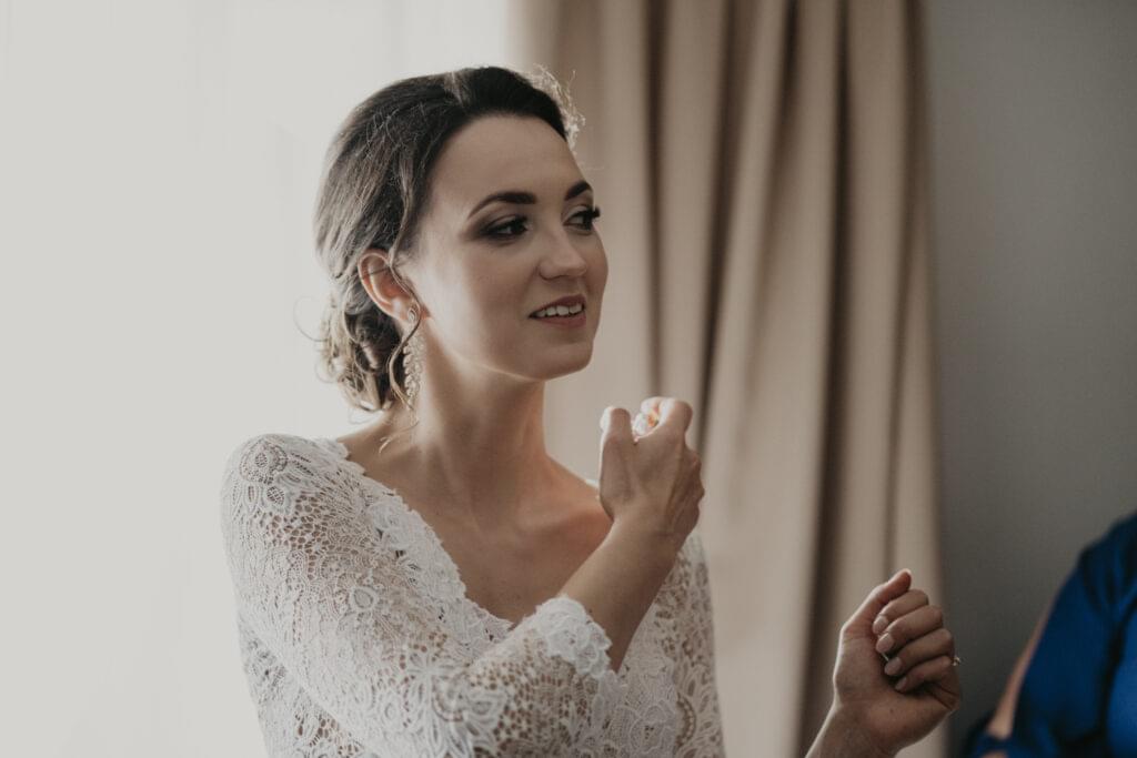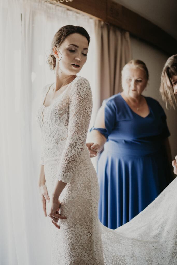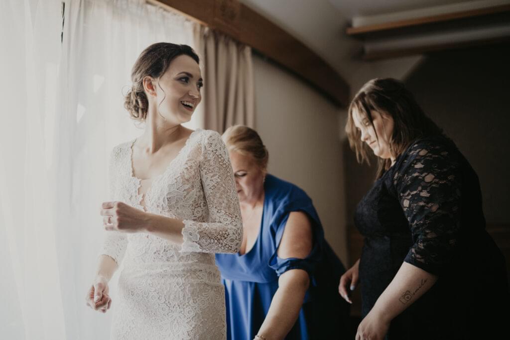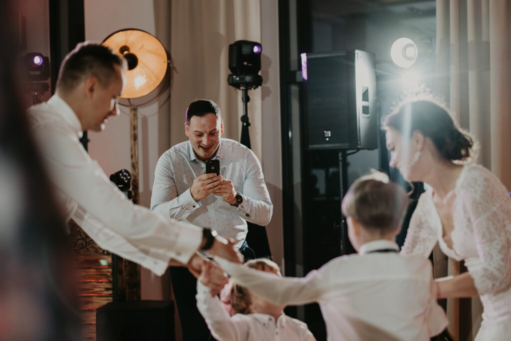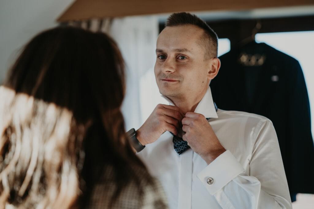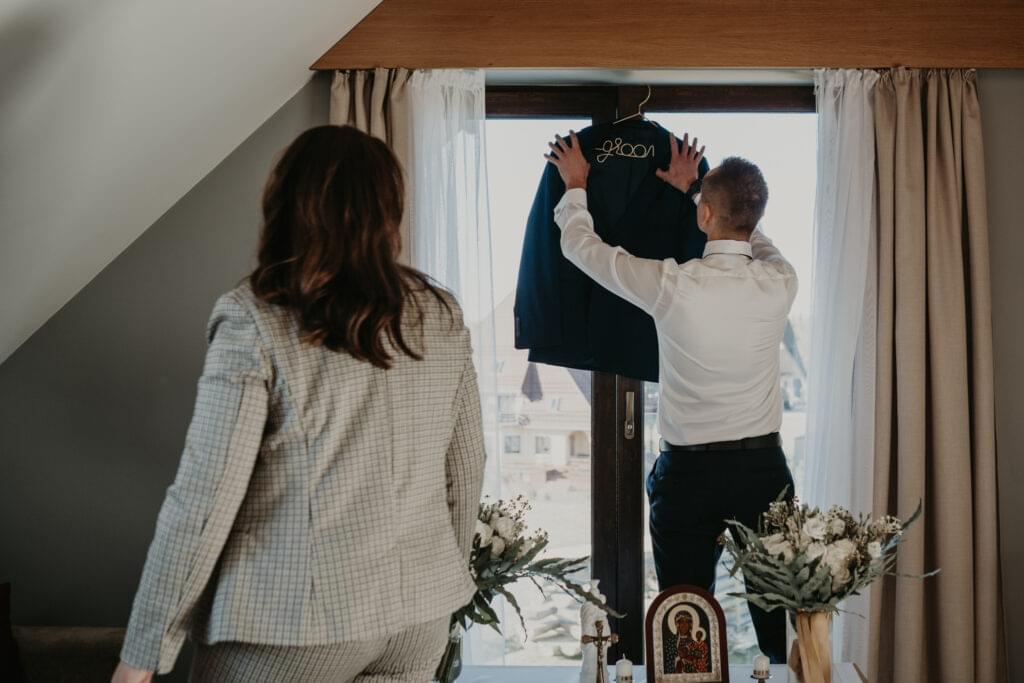 W drodze do kościoła, młodej parze towarzyszyła tradycyjna muzyka regionalna, dodając uroku i podkreślając ich silne związanie z kulturą i tradycjami regionu. Dźwięki skrzypiec i kontrabasu wprowadziły wszystkich w magiczną atmosferę tej uroczystości, a przepiękne melodie pozostały w pamięci gości na długo po zakończeniu wesela. To był niezapomniany moment, kiedy to wśród górskich krajobrazów i tradycyjnej muzyki Oliwia i Janek rozpoczynali swoją drogę małżeńską.